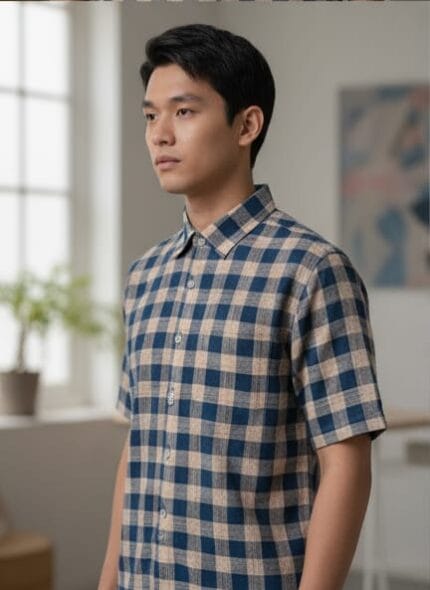 Urban Checks – Navy & Beige Cotton Classic Shirt
