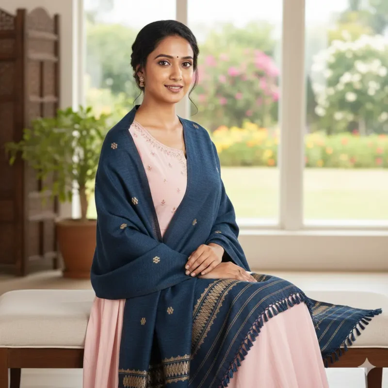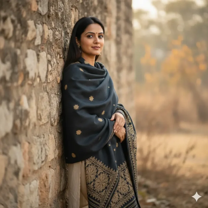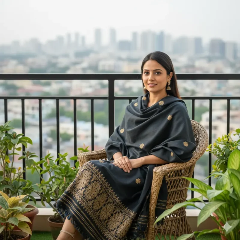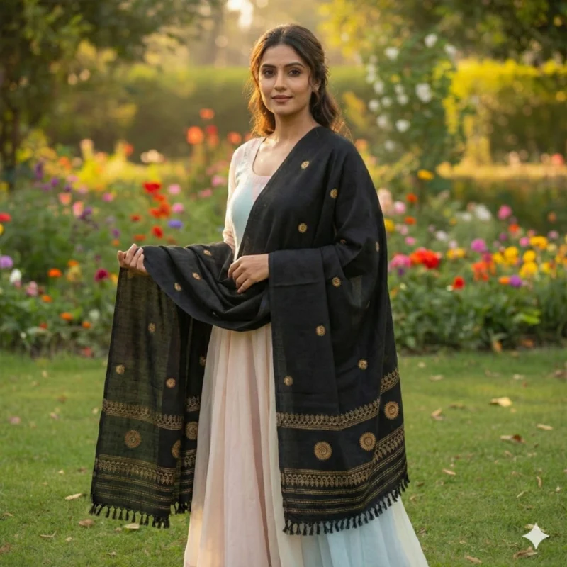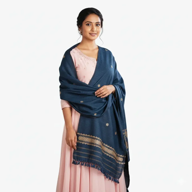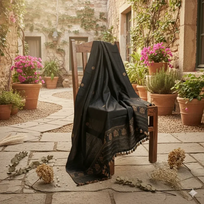 Midnight Heritage Eri Silk Stole Muga Work