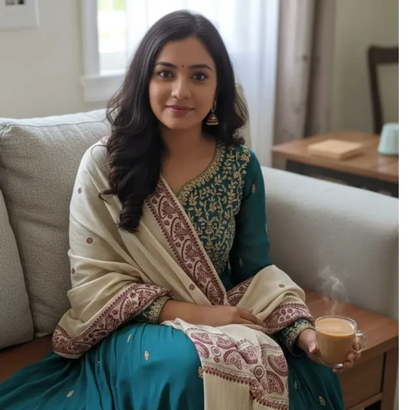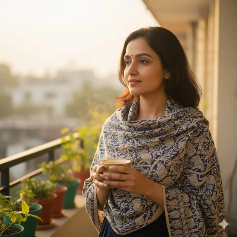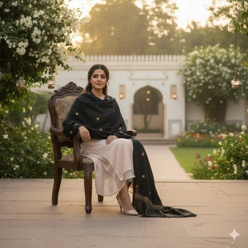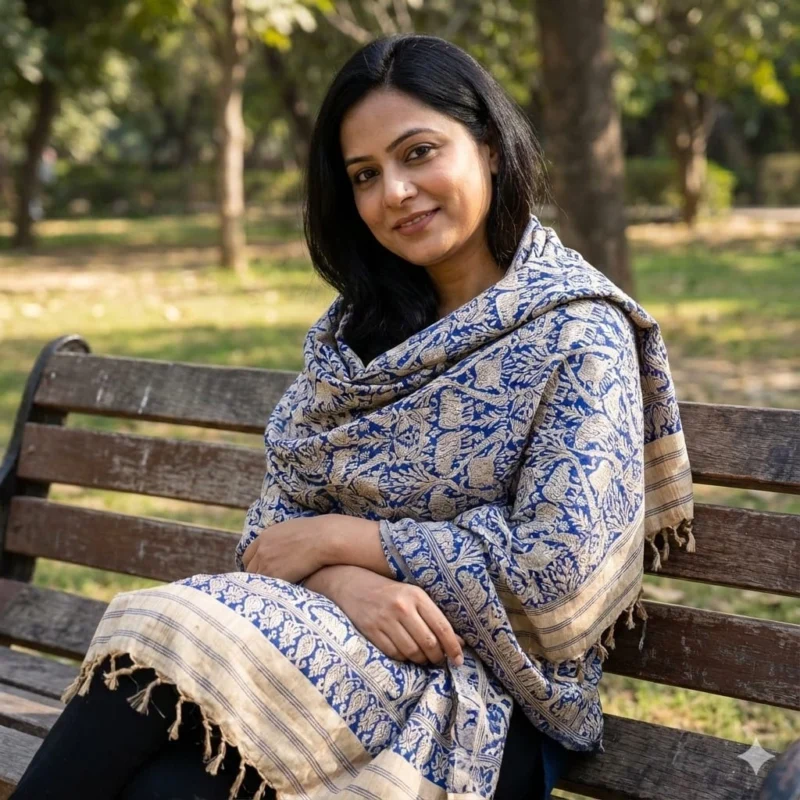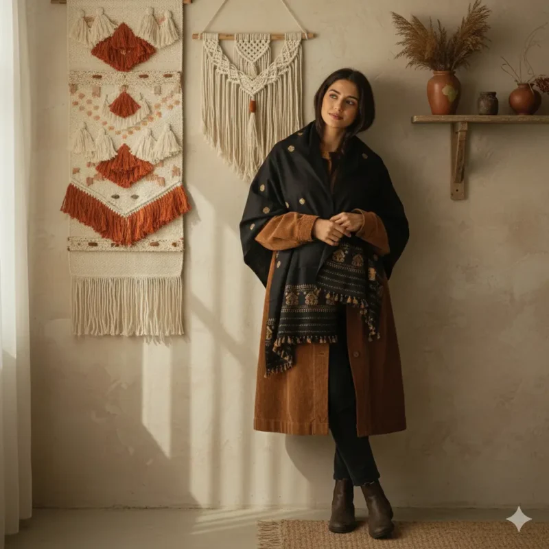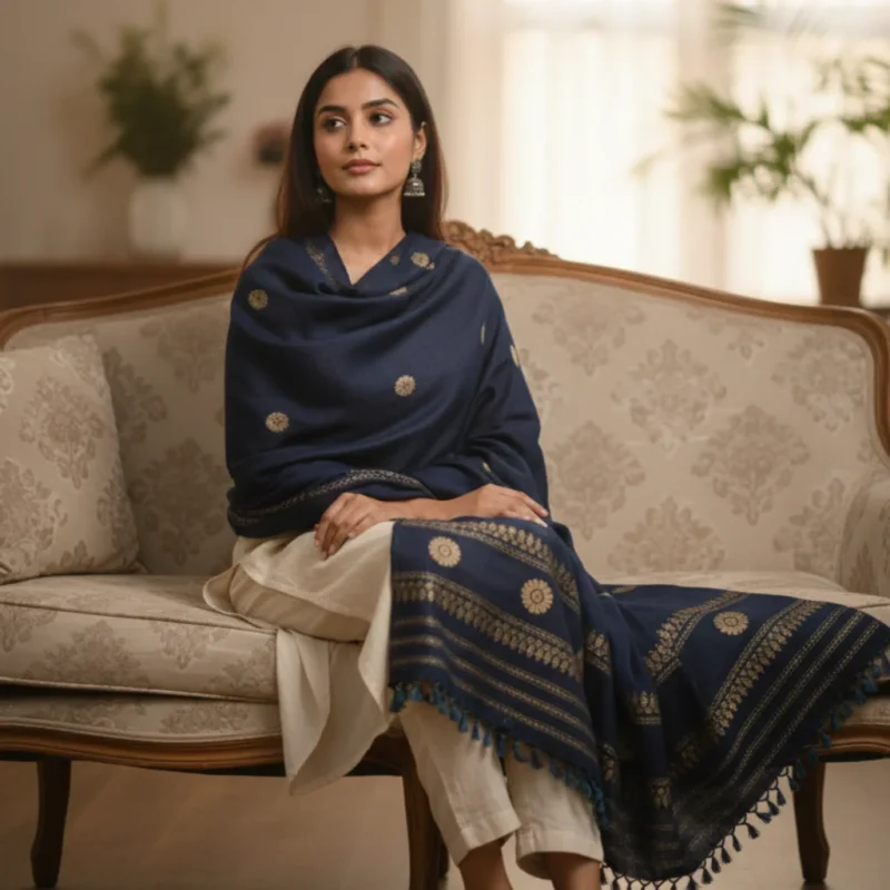 Midnight Heritage Eri Silk Stole Muga Work