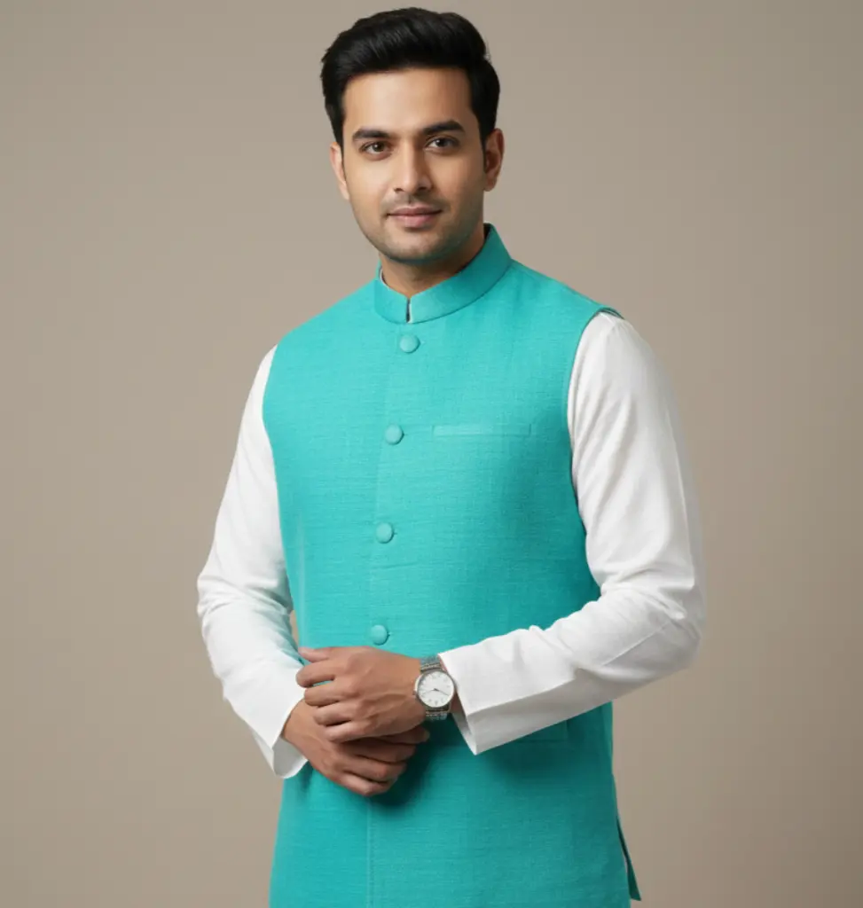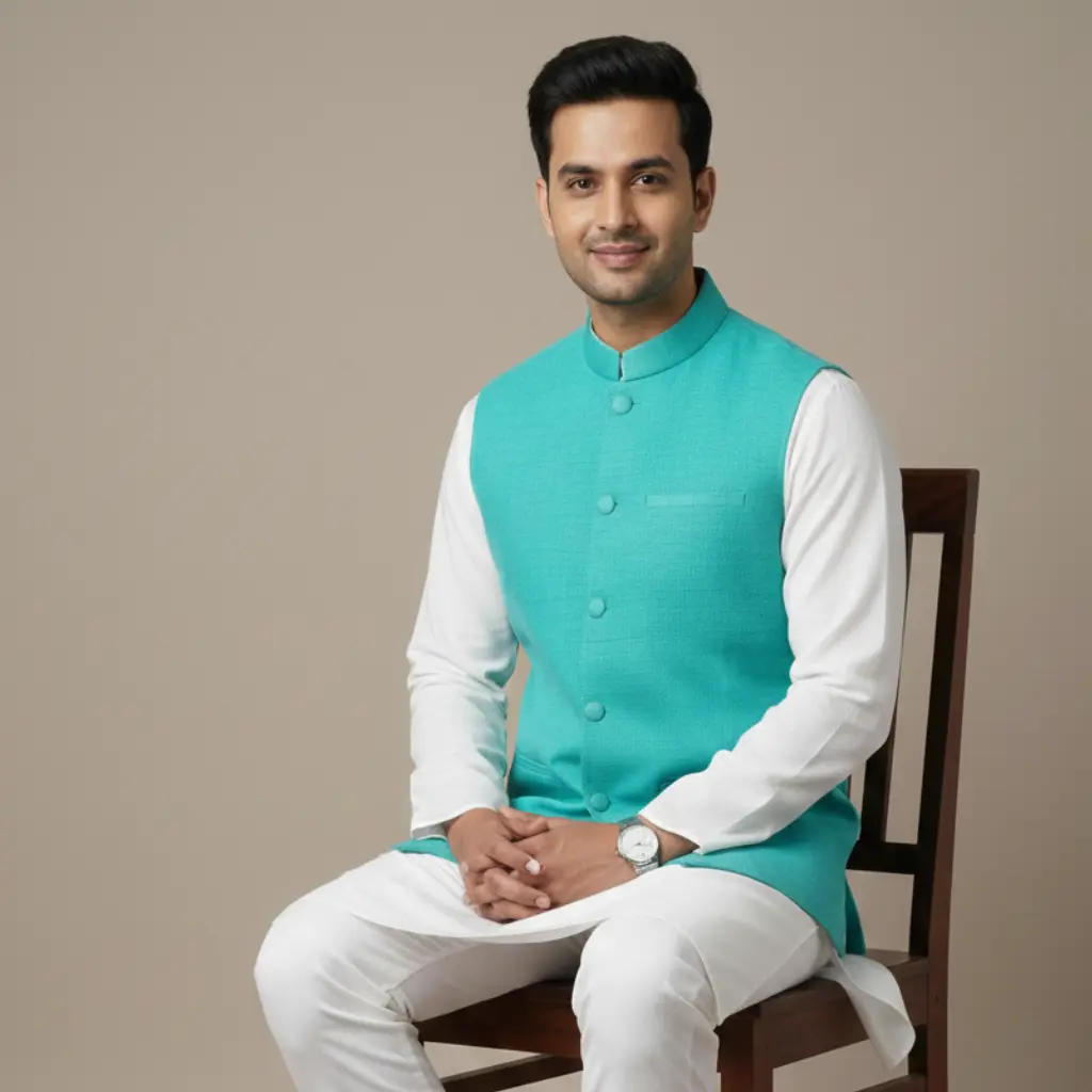 Step into elegance with the Turquoise Royale Eri Silk Jacket. Handcrafted from premium Assam Eri silk, it features a rich textured weave and a striking turquoise tone that adds freshness to any ethnic outfit. Lightweight, luxurious, and effortlessly classy—perfect for weddings, festive events, or sophisticated celebrations.