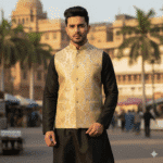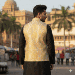 The Zari Zest Classic is where ethnic elegance meets modern finesse. Intricately woven golden motifs glow subtly over a textured beige base, making this Modi jacket an ideal pick for groomsmen, festive parties, or upscale cultural events. Tradition never looked so refined.