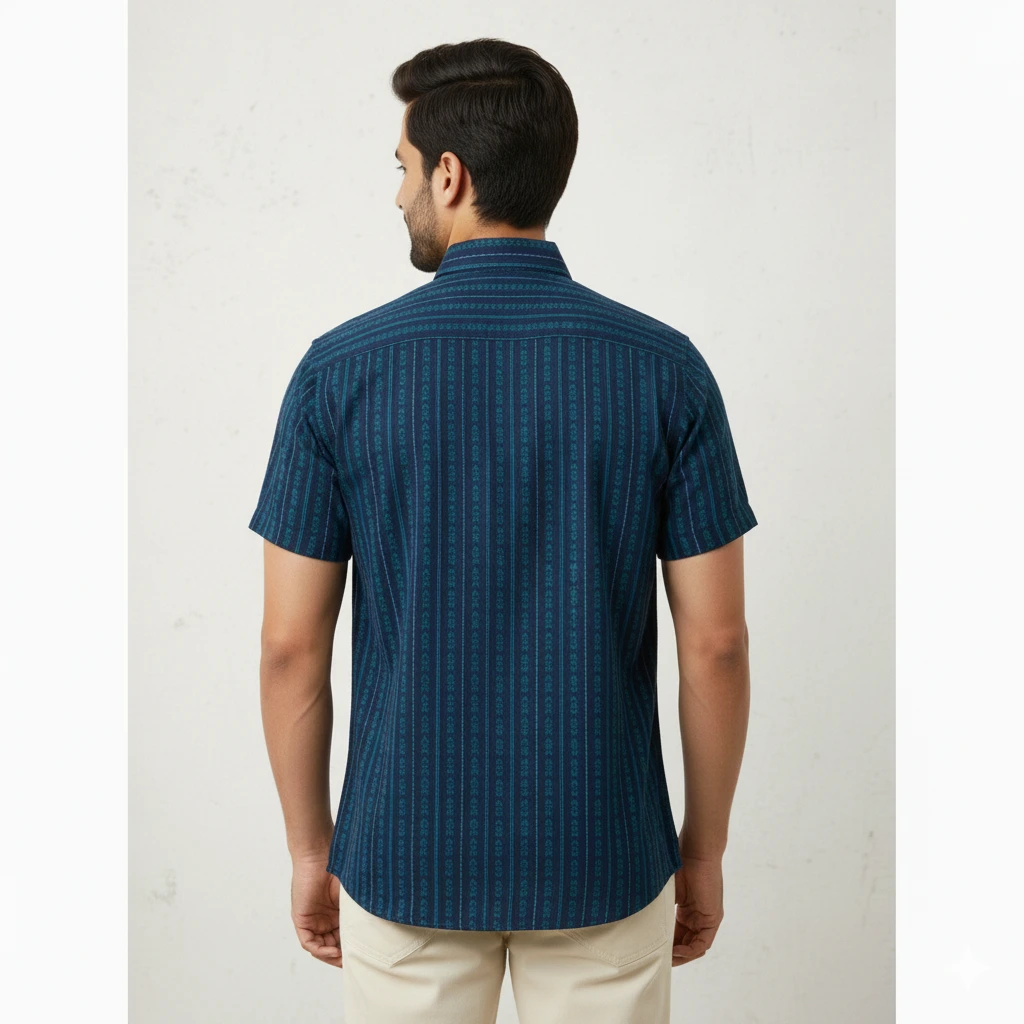 Stand out in subtle style with Indie Stripe. Tailored from pure cotton, the vivid teal tribal stripes against the navy backdrop offer a unique ethnic fusion that’s both bold and breathable. A must-have for the trend-conscious with a love for roots.