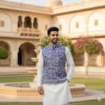 Bold, royal, and rooted in heritage—the Blue Baagh Jacket features majestic tigers, graceful deer, and leafy patterns in a striking indigo tone on earthy beige. This Modi jacket reflects the courage of the wild and the beauty of Indian craft, making it ideal for festive or semi-formal ethnic occasions.