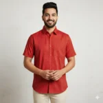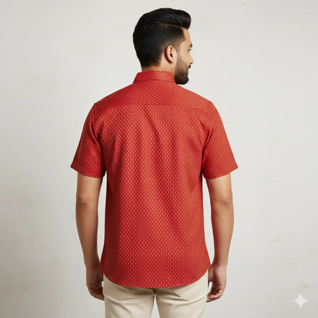 Set your look ablaze with Firedrop, a cotton classic featuring vivid yellow motif prints on a blazing red base. Whether you’re dressing for a celebration or just want to stand out, this shirt brings artisanal aesthetics to your wardrobe with ease.