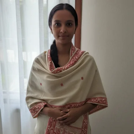 Original price was: ₹1,999.00.₹1,499.00Current price is: ₹1,499.00.Shvet Prerna – Handwoven Eri Silk Shawl Muga Work