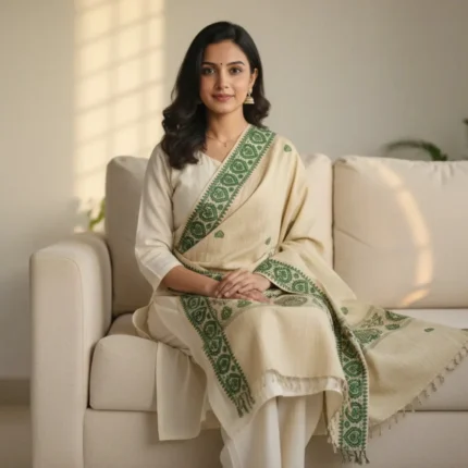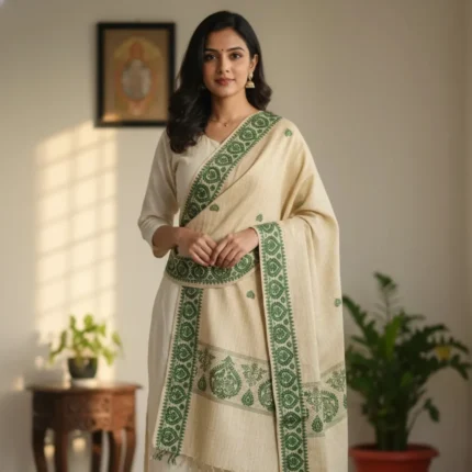 Original price was: ₹2,999.00.₹2,499.00Current price is: ₹2,499.00.Green Gild Eri Silk Stole Muga Work